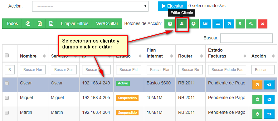 1.- Seleccionamos a los clientes a lo que se deseamos enviar Avisos de Mantenimiento